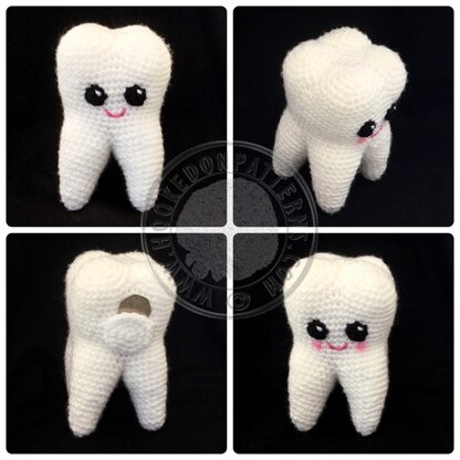 This sweet little molar tooth amigurumi can be made just as a cute cuddly toy or display item, or be used as a tooth fairy buddy. Instructions for a tooth/coin pocket is included.