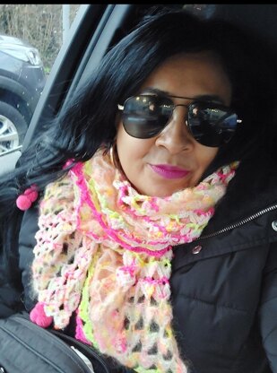 Dance around to the sounds of the ’80s with this neon-edged shawl!