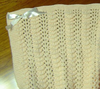 The historic Old Shale lace pattern, also known as Feather & Fan, combined with a simple garter stitch border creates a pretty little blanket for a large baby doll or newborn baby. Or choose one of the larger sizes for a childâs or adult afghan. Extra stitches on the side borders (short rows) ensure that the edge is neat and straight. Design is knit flat in your choice of 6 different sizes.