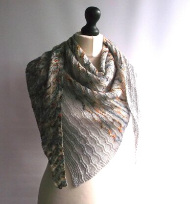 Worked sideways, this triangle shawl uses slipped stitches to create a hexagon pattern that blends from one skein into the next.