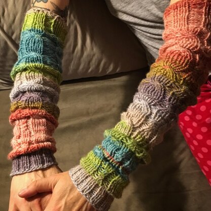 Elongated Cables for arm warmers so yummy they're like candy for your arms.