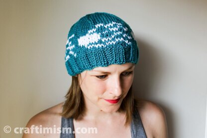 This hat pattern features 4 bacteria swimming around the hat.