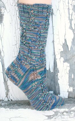 This pattern was the December 2009 selection for theknitter.com luxury sock club. The pattern is available currently by contacting theknitter.com and will be available for sale through Ravelry in March 2010.