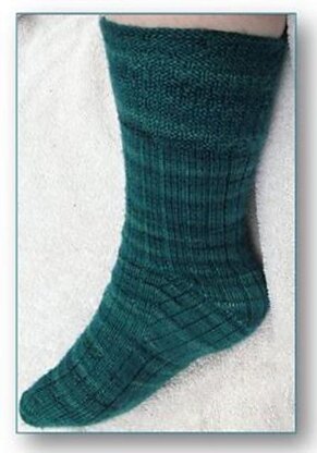 Choose between toe-up or top-down, using your favorite method of sock knitting. A simple ribbing covers the foot and leg, with a garter stitch basketweave band for a cuff. Instructions are also included for an anklet version.