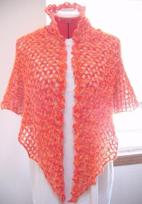 It is a top-down, symmetrical, triangle shawl. It has shells on the top edge and center. The rest are double crochet. You can make it larger by crocheting the repeats to your desired size. This pattern will work with any kind of yarn and colours. Gauge is unimportant.