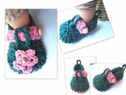 Darling Little Baby Booties with an optional flower applique. (Instructions included) Step by step photos of the construction of these booties.... AND THEY ARE VERY EASY... I would say they are easy enough for beginners, with the step by step photos. There is no guess work here!