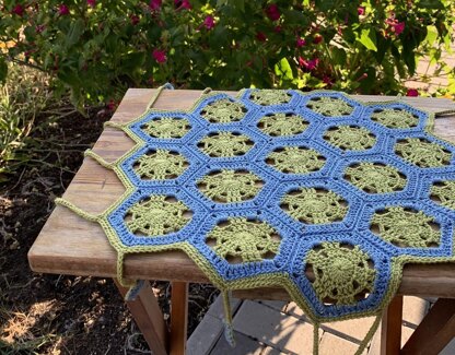 Table mat "Aurelia" The size of the tablecloth, if using this yarn: 15.8’’ x 15.8’’ (40cm х 40 cm) MATERIALS: Yarn: sport cotton 150m per 50g - 2 skeins 2 colors:blue (1 skein) and green (1 skein) Crochet Hook: U.S. C/2, U.K. 11, No 3 mm Markers and scissors