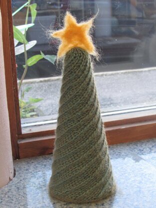 A lovely center piece or holiday decoration featuring simple traveling stitches. 1 skein Berroco Lustra (Optional:some yellow roving for a star) US Size 7 DPN or Magic Loop