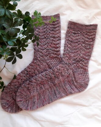 Taimi Socks feature an easy to memorize lace pattern and are knitted cuff down in magic loop.