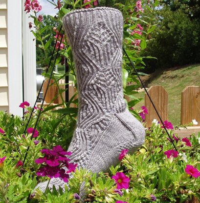 This is a toe up pattern in 2 sizes. Small is a 64 stitch leg, Medium is a 72 stitch leg. There is an option for doing the toe in an eye of partridge stitch. The stitch pattern is charted and written out.