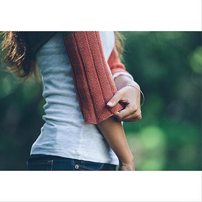 Talus begins gracefully with wide ribbed beautiful sleeves. The bold earthen colours compliment each other through sleeve and body of the shrug as the backbone of Talus. Worked from the cuff to center from both sides and seamed at mid back, Talus offers both simplicity and interest for your knitting adventure.