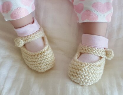 These super cute Mary Jane style shoes are knitted in 8ply/DK yarn. They are knitted in garter stitch, featuring an ankle strap and optional knitted buttons.