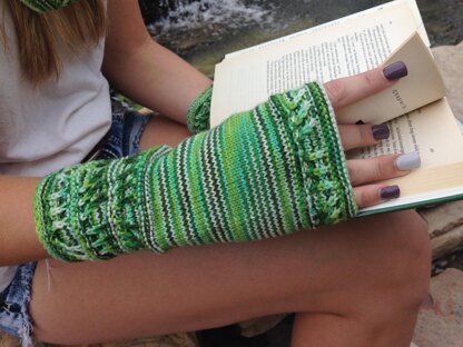Cabled and textured fingerless mitts worked in the round, and suitable for both men and women.