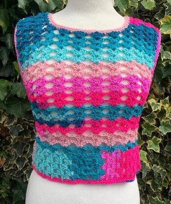 The top is worked in the round until the armholes and then the back and front are worked separately. The only seaming is at the shoulders and they are joined using ss.