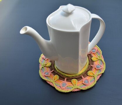 A colorful summer project for just few hours. This teapot coaster with leaves was crocheted in Overlay Crochet technique. This technique is usually addressed to advanced crocheters but I personally think that advanced beginners can also master it with minor problems.