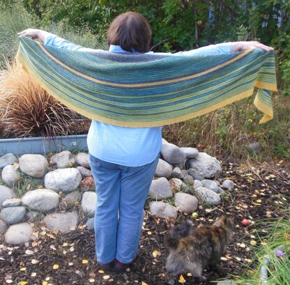This shawl represents that journey from tears to laughter. Simple garter stitch striping knits up easily, and with the generous size, we’ll all be in the laughter phase by the time the shawl is finished.