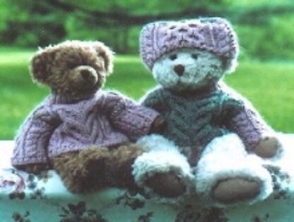 **About the Design: ** This pullover and hat were designed for 11-13” tall bears. These arans are worked circularly to the armholes, then front and back are worked flat. The sleeves are worked circularly from the cuff, then the saddle portion of the sleeve is worked flat, joining the front and back as you go.