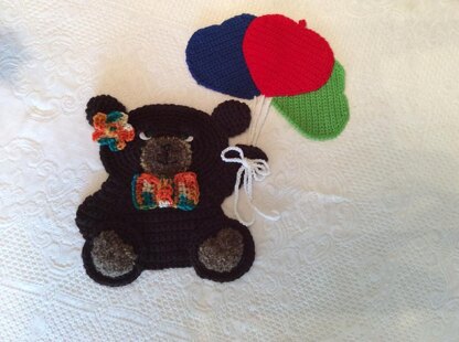 You will need the following to complete this project: Loops and Threads Charisma : Expresso ( approx 150 Yards) red heart light and lofty : brown stripe (approx 50 yards) red heart super saver: spring green, royal blue , red and white bernat softee chunky : kimomo (flower and bow tie) 22 mm oval safety eyes 18 mm safety nose 7 mm hook (used the most during this pattern) 4 mm hook (balloons) white felt tapestry needle