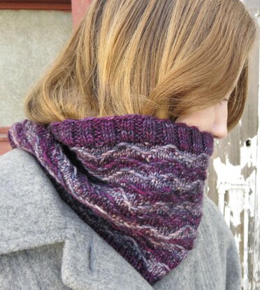This warm and cozy slip stitch cowl uses two related colorways of a short repeat variegated yarn to create a richly textured design. The raised ripple of slipped stitches gently undulates, dipping into the previous stripe to create a distinctive texture and sense of movement. Both written and charted directions are provided.