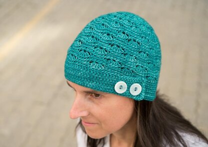 The beanie is worked top down continuously in spiral without joining, using a classic stitch pattern with added texture by working in back loops only.