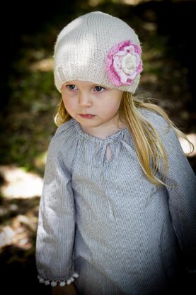 Easy knit Girls Layered Flower Hat Pattern. The Flower is knitted.