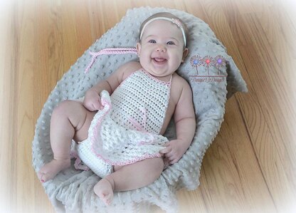 This is a PDF crochet pattern for a sweet and adorable romper or skirted diaper cover. This pattern coordinates perfectly with my Ainsley Hat and Tessa Sunhat patterns.