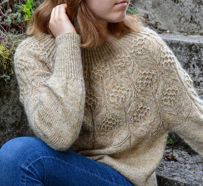 TESSA is a cozy oversized seamless top-down sweater with a beautiful pattern on the circular yoke while the rest is made in simple stockinette. You can choose between two options for the yoke depth.