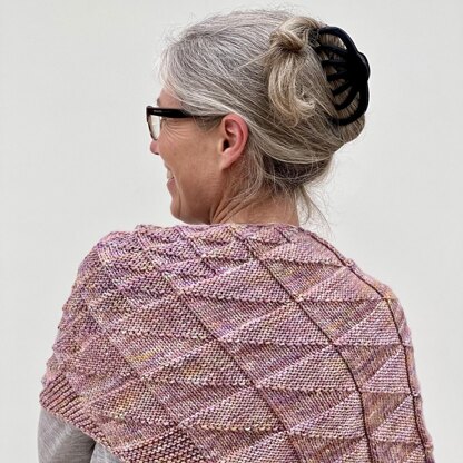 The Tessellation Shawl is inspired by the Leadenhall Building in the City of London, UK, designed by Rogers Stirk Harbour + Partners. The structure of distinctive building contains multiple triangular shapes which inspire the shawl’s textured stitch pattern. Each individual triangle motif appears to combine with the next to form a tessellating grid pattern across the shawl. Each triangle shape is knitted in a combination of knit and purl stitches.