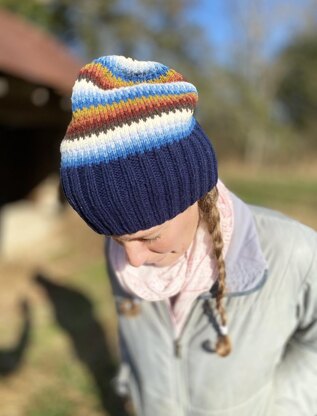 FINISHED MEASUREMENTS 22” [56 cm] head circumference with 18” [45.5 cm] brim circumference 12” [30.5 cm] length from cast on to crown