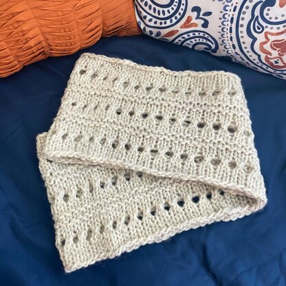 The Ann Cowl was named after my mom and knit up with some yarn she brought back from Australia! The eyelet design is feminine, but not distracting and is a great cowl to pair with anything during the fall and winter months!