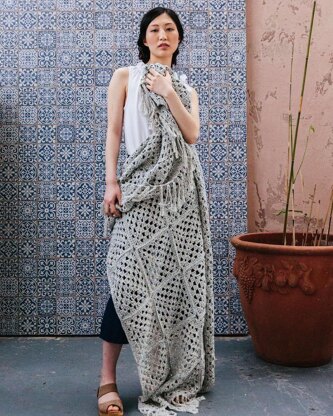 - description - a contemporary take on the traditional and beloved granny square blanket is here! the billie jean blanket is a stylish, modern crochet blanket made from luxurious, neutral-coloured, upcycled yarn that works beautifully in minimalist and modern interiors. drape stylishly across an armchair or add an extra layer to your bed styling. the crochet blanket feature curved, ridged joining detail and on-trend fringe. these subtle details add something extra to the classic granny square style. the billie jean blanket uses Wool and the Gang Billie Jean yarn which is made sustainably from leftover denim, making this an eco-friendly make. - skills - advanced beginner / crochet in the round / basic crochet stitches / crochet in back loop only / crochet in front loop only / crochet joining / blocking
