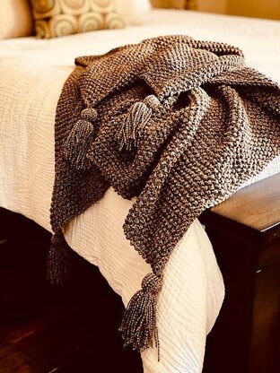 There is nothing more cozy than a textured throw. This blanket creates a fun, easy to memorize pattern. And did you notice the tassels?