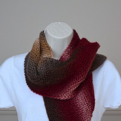 Design: A loosely bias knitted (slanted) lightweight scarf in a self-patterning yarn