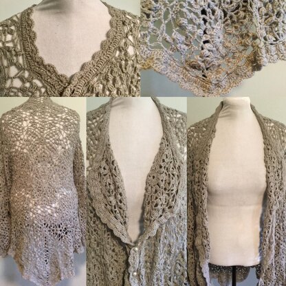 Great oversized lace cardigan that looks like a cape or shawl, but fits like a cardigan. Instantly dresses up a simple tank or tee when thrown over a casual outfit. Works as a great beach coverup as well.