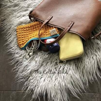 Practical design is my favorite, because it means that everyone can find a purpose for the item. Not everyone wears hats or cowls. So, I set out to design an item that has multiple uses. This fun little pouch can be used as a travel makeup bag, or a notions holder, or a pencil pouch, the possibilities are endless! What will you use it for?