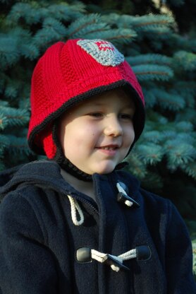 Can you feel the heat? Of course not, it’s freezing outside! But your little firefighter isn’t feeling the cold either, thanks to this adorable knitted helmet, complete with earflaps and chin strap for extra protection against the elements. The yarn is a soft superwash, easy on delicate skin, and easy to toss in the washer as needed. The appliqué shield can be customized to your firefighter’s specifications.