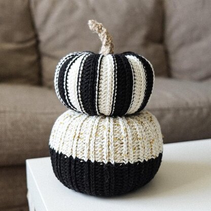 Details: (1) 9-page digital PDF download in US standard crochet terms, instructions for small and large size, instructions for solid, striped, and colorblock version, instructions for making customizations, category 4 worsted weight cotton yarn, size 4mm crochet hook, photo tutorial for seaming, filling, and closing pumpkin