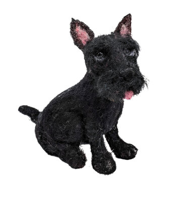 The Crafty Kit Company's "Wee Scottie" needle felting kit contains everything needed to make an adorable little Scottish Terrier, including step-by-step instructions with clear colour photographs. This is an 'improvers' kit, designed for those who have already done a little needle felting. The finished size is approximately 12-15cm high when complete. Recommended for age 10+ due to sharp needles.