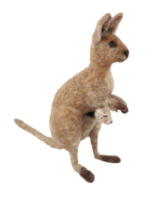 Votre kit de feutrage à l'aiguille Kangourou et Joey contient : Laine 100%, aiguilles de feutrage, cure-pipe, mousse pour travailler, yeux en verre, fil de fer, instructions en couleur complètes. Taille finale environ 28 cm.