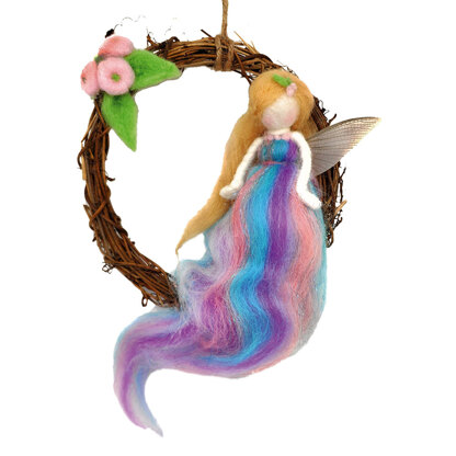 The Crafty Kit Company's Summer Fairy Wreath needle felting kit contains everything needed to make your own unique wreath decoration, including step-by-step instructions with clear colour photographs. The finished size is approximately 16cm diameter when complete. Recommended for age 10+ due to sharp needles.