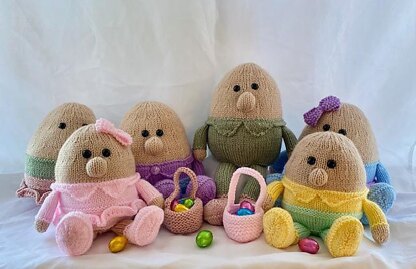 Eggcited? Please welcome The Egghead Family - Shelly, Shellburn, Dippie & Eggie. These have so many different variations, short legs, long legs or no legs. Or you could just knit it as an egg shape. Worked flat on 2 needles