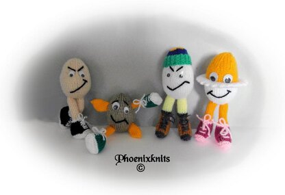 The pattern includes individual instruction for sneakers, Scrambled, sunny and hard boiled. Also included, are instructions for making them into shelf sitters by making dangly legs complete with little boots.