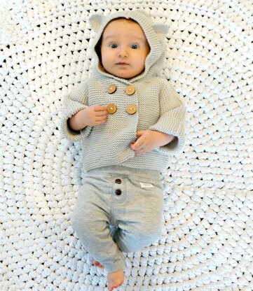 keeps your baby's neck and ears warm with the cute hoodie with little ears on it. It was designed with comfort and detail in mind. Sizes go from 3 months up to 24 months.