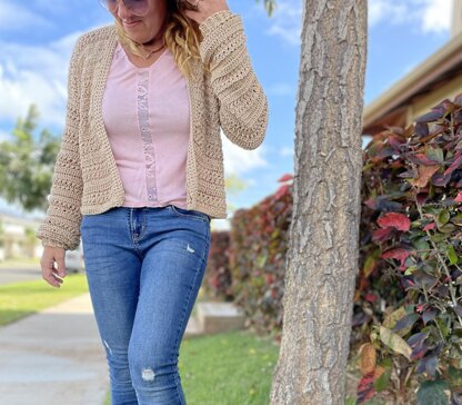 This is a crochet pattern for the Evie Cardigan, an airy spring cardigan that will pair perfectly with all your favorite outfits. It is made up of simple double crochet stitches and twisted double crochet stitches to create a unique texture. From a cozy day on the couch, to a night out on the town, to your everyday wear, this sweater is truly something that you need in your wardrobe.