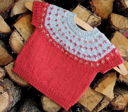 The Flutterby is a baby, toddler and child's tee andpullover that's knitted top down. There are 8 sizes: 3 months to 8/9 years. It is suitable for low intermediate knitters.