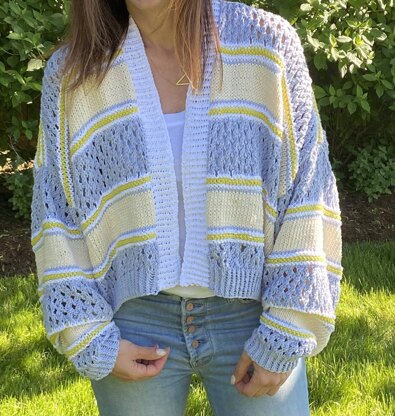 This oversized loose cardigan looks great over a tee shirt or summer dress.