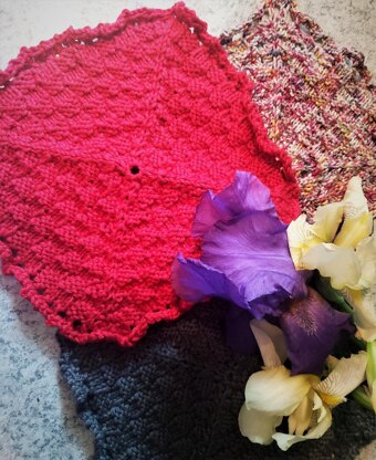 This pattern is worked on DPNs from the center out. It is switched to circular needles for the last 2 rows. I am listing it as an intermediate pattern just because of being on DPNs and having the first few rows be rather clumsy with all the needles. It really isn't hard once you get past the first 5 or 6 rounds. This is the third pattern in the series I am designing and naming after the women of my family.