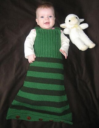 Quick to knit in bulky weight, this warm woolie sleep sack will keep your little one warm once they've outgrown the need for arm swaddling. It's nice and cozy around the body while leaving the arms free, and giving lots of room for those kicky little legs. The ribbing through the body will provide a nice snug fit, while being stretchy enough to fit a range of sizes. Adjustable straps allow for expansion in length with buttons tucked on the inside so they're both comfortable and out of reach of little fingers. A button band (or optional zipper) along the bottom edge allows your little pickle to stay warm during quick and easy diaper changes. Cloth diapering? Use non-superwash wool and add a little lanolin for extra night time protection. Also great for disposable users to protect bedsheets from leaks.