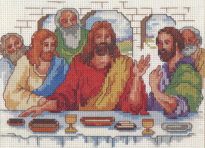 By Linda Gillum. Jesus celebrates the Passover seder with his disciples in this intimate version of The Last Supper. The elements are on the table and he is blessing them as well as speaking with his followers. This small interpretation of such a momentous event is well designed by Linda Gillum.