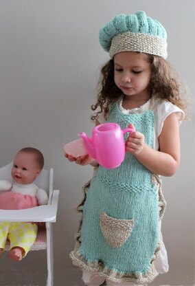 This little chef set makes play time even more fun. This hat and apron are knit with a worsted weight yarn that gauges at 4 stitches per inch and a US #9 needle. There are ties around the neck and back and can be worn by your little one while playing in the kitchen, creating art, playing with dolls and so much more. The pattern fits ages 3-10 years. The hat has a circumference of 19-20" and is slightly adjustable. The hardest part is deciding which color to knit it in first!